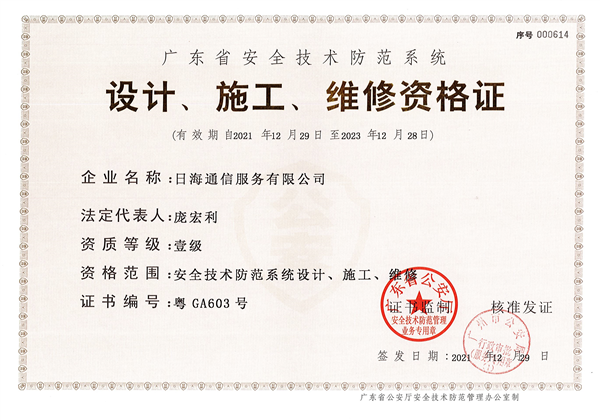 广东省安全技术防范系统设计、施工、维修资格证壹级