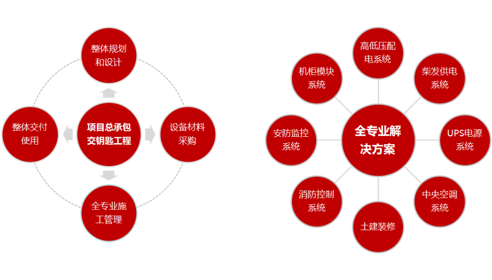 公司拥有庞大的IDC专业团队,包括高压、低压、消防、机电、暖通、弱电智能化、土建装修等全专业的项目管理人员,为客户释放管理压力,提供“五星级”服务。